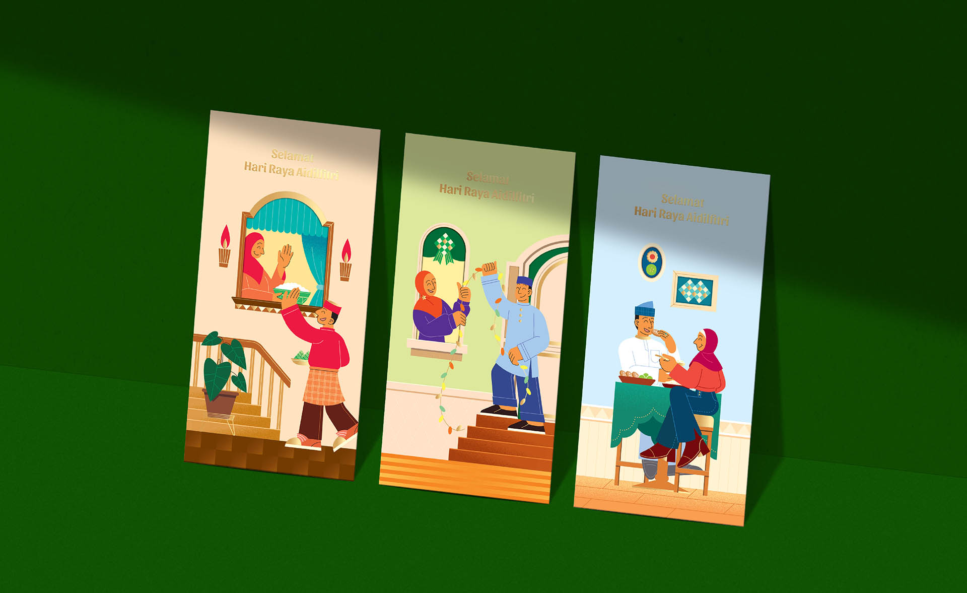 After our first collaboration on the CNY campaign, Kewpie Malaysia loved our designs and illustrations. So, right after completing the CNY campaign, they immediately engaged us for the Raya campaign.